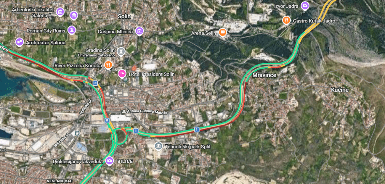 Na brzoj cesti Solin-Klis u 14:05 sati u tunelu Mravince dogodila se prometna nesreća, sudar teretnog i osobnog vozila.