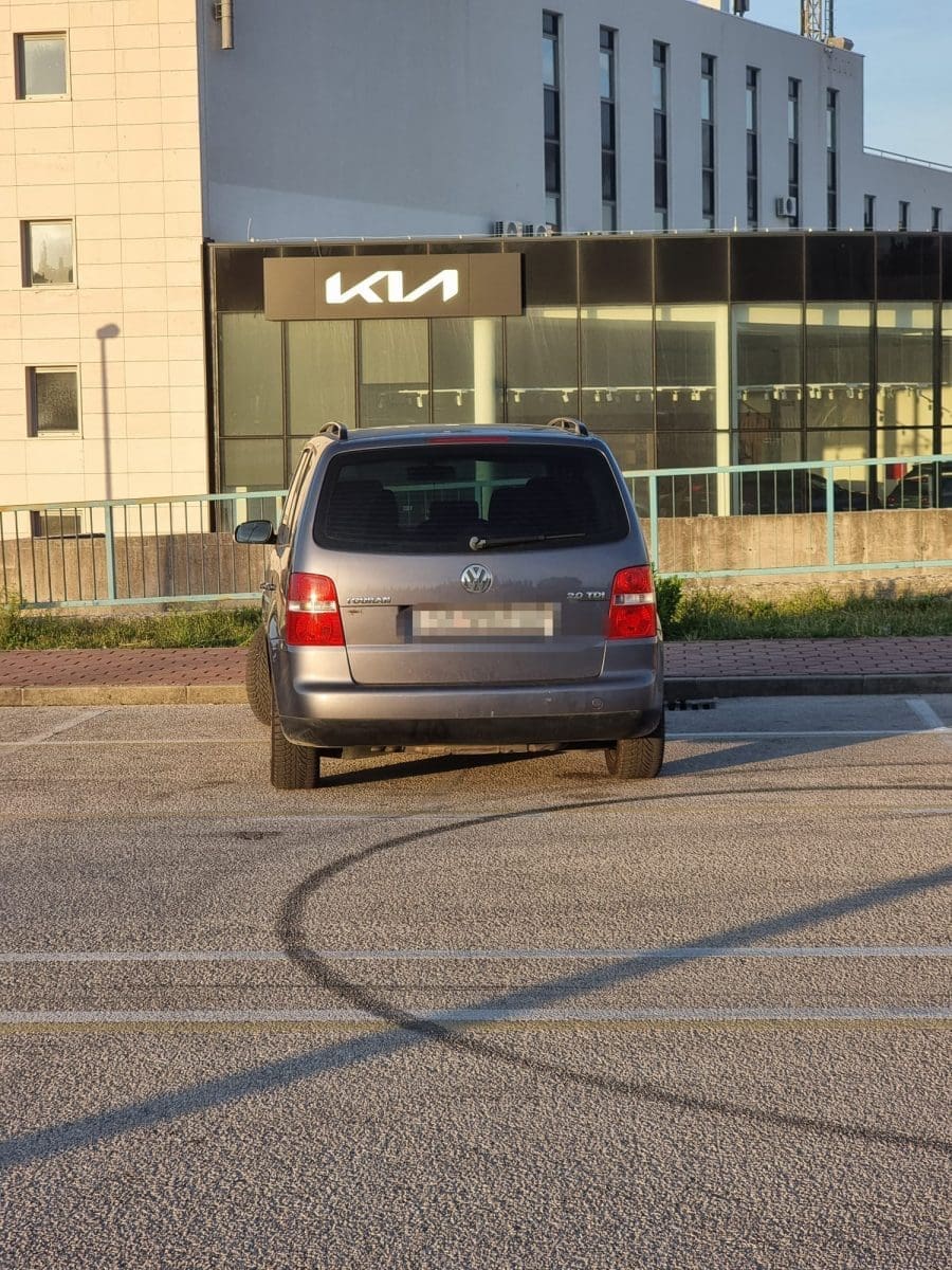 Fotografije ovog nonšalantnog parkiranja nasred poligona, iako se parkiralište nalazi 10 metara dalje, ustupio nam je na korištenje čitatelj. Naveo je da je kontaktirao policiju, prometno redarstvo i pauk službu, no nitko ne može reagirati niti kazniti vozača, usprkos prometnom znaku na ulazu i izlazu s poligona.