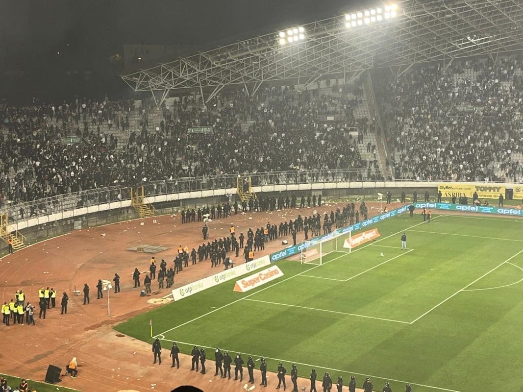 Sve je počelo odmah po završetku utakmice kada je na teren uletjela skupina Hajdukovih navijača. Letjele su baklje po terenu, ali i stolice. Policija je otrčala na sjever za navijačima.