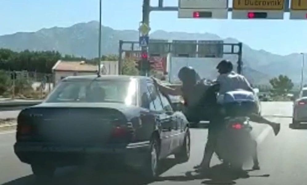 Akteri su motociklist i vozač osobnog vozila, a sve je završilo iskazivanjem nervoze od strane suvozača motocikla. Kako smo doznali od čitatelja, navodno je automobil oduzeo prednost motociklu te su mu na ovaj način pokazali da je "u krivu".