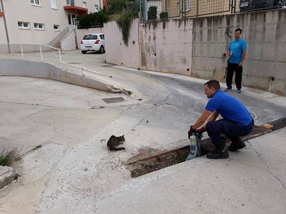 U srijedu poslijepodne solinski vatrogasci zaprimili su poziv da se jedna mačka zaglavila u odvodu u blizini Konzuma u Svetom Kaji.