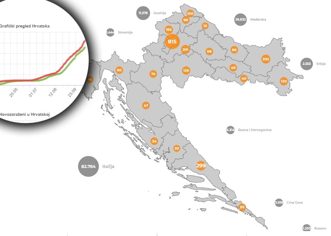 Dosadašnji najveći broj novozaraženih zabilježen je 8. listopada kada je bilo 542 nova slučaja.