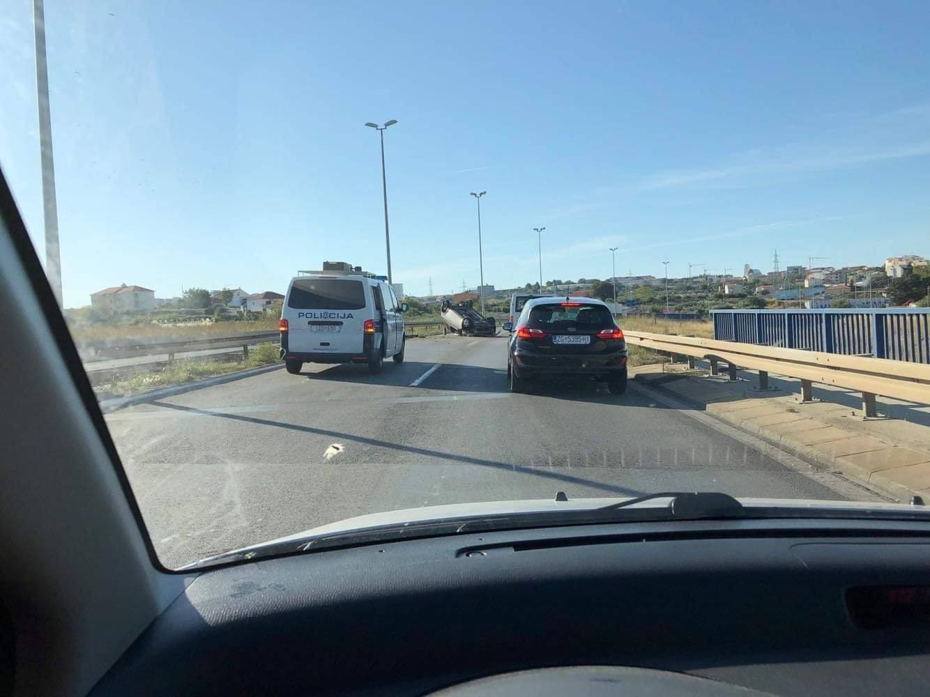Na nadvožnjaku kod Salona Malla u smjeru Splita dogodila se prometna nesreća u kojoj je automobil završio na krovu. Zbog navedene nesreće na tom području stvaraju se gužve.