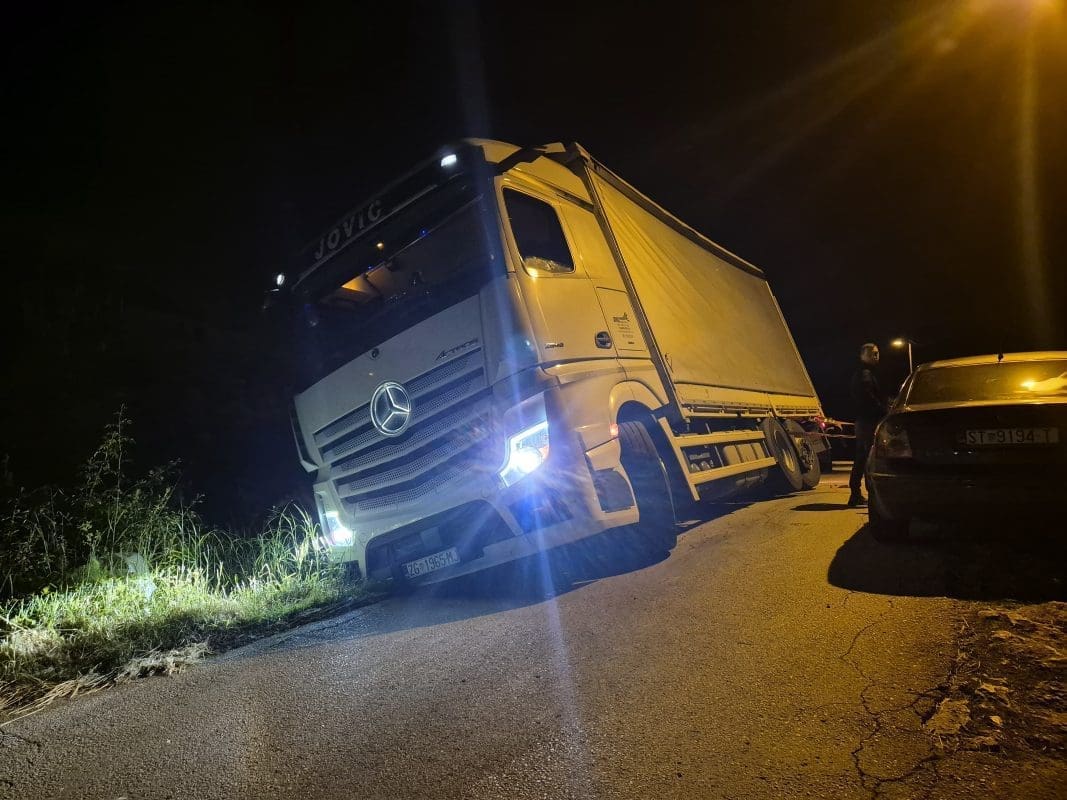 Kako doznajemo, vozač je pokušao zaobići parkirane automobile, no s obzirom na teret, nije mogao proći i prokliznuo je.