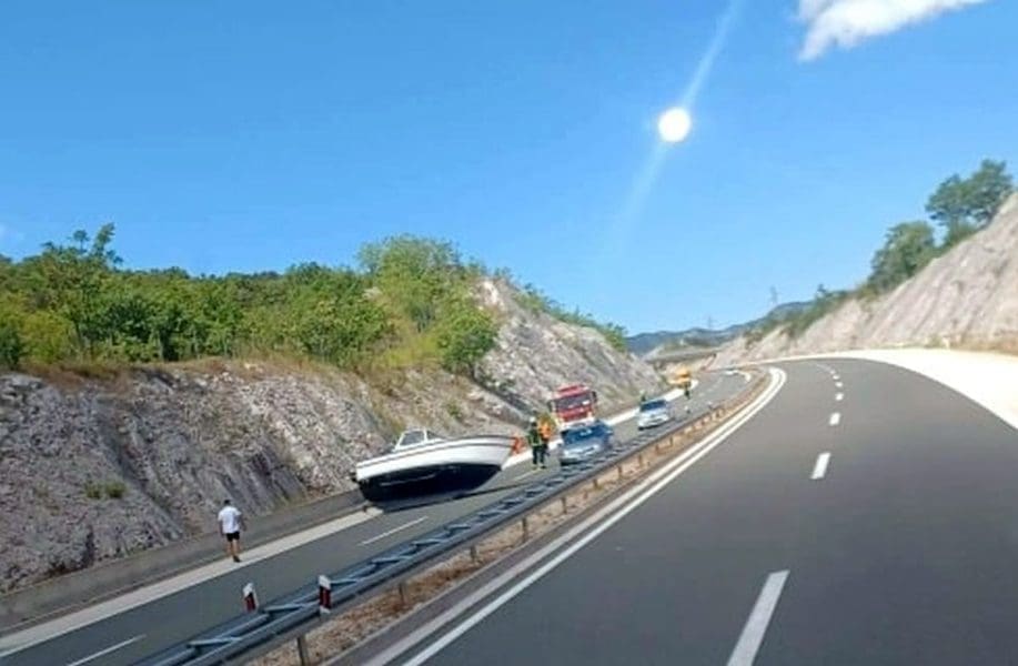 Naime, vozač je automobilom udario u zaštitnu ogradu te mu je s prikolice brod završio na cesti.