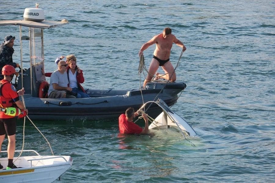 Jedna osoba je ostala zarobljena u kabini broda koji je tonuo. Spašavatelj HGSS-a skočio je u vodu i osobu izvukao iz kabine.
