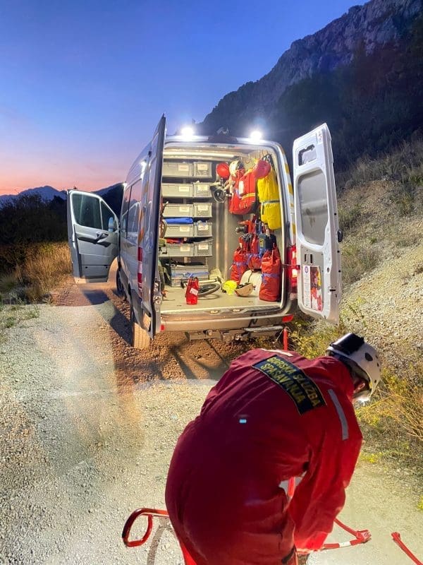 - Po dolasku na mjesto nesreće osoba je imobilizirana i transportirana do najbliže prometnice brdskom nosiljkom mariner.