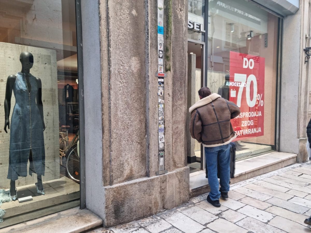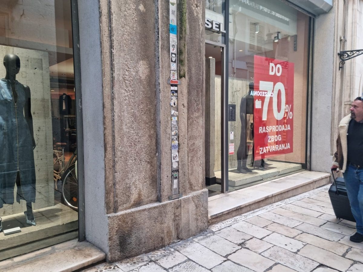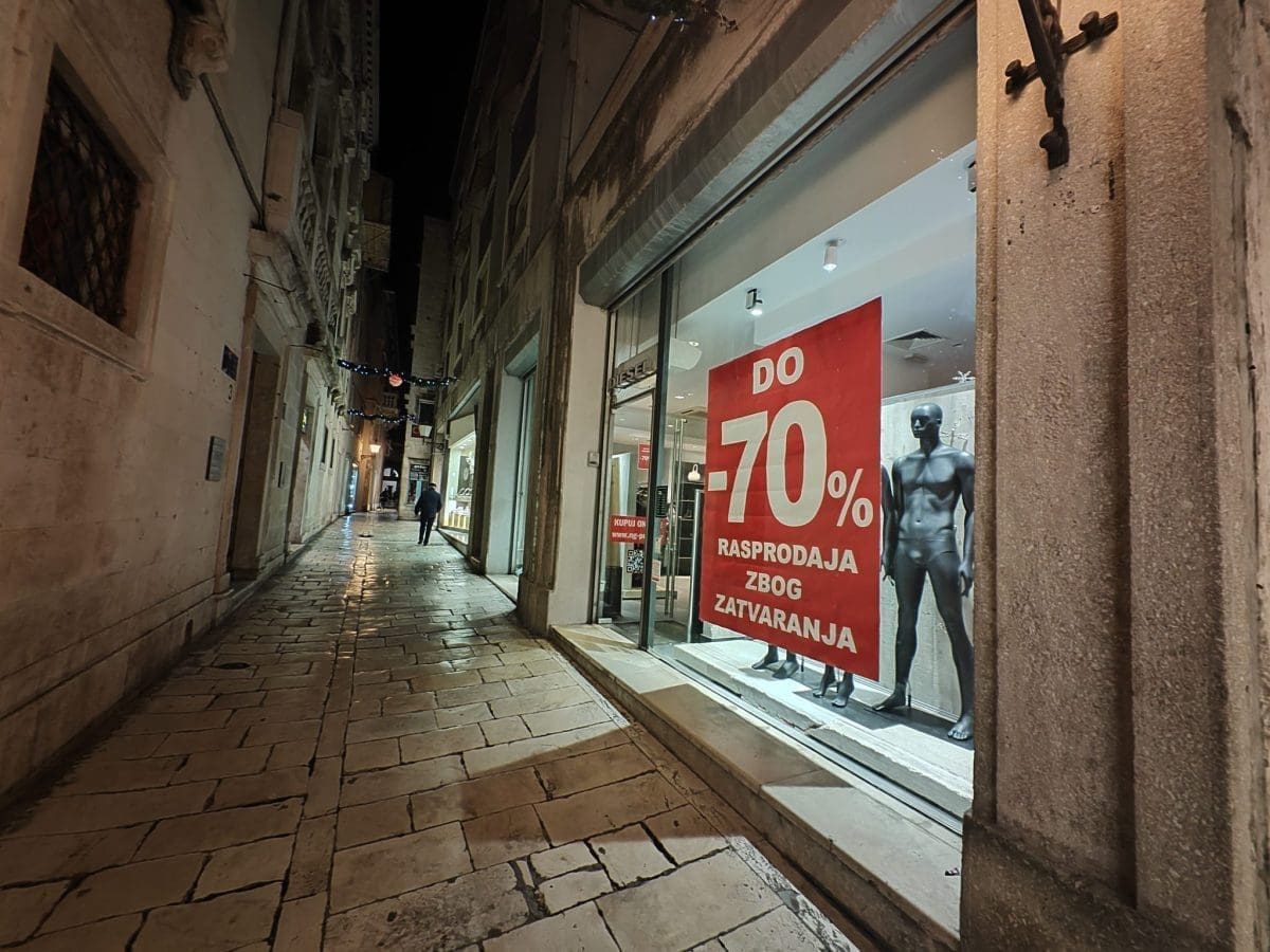 Dok ovo pišemo, vjerojatno posljednji kupci ulaze u robni dućan 'Diesel' koji će uskoro zatvoriti svoja vrata, a kako neslužbeno doznajemo na tom mjestu će osvanuti još jedan - pogađate, ugostiteljski objekt. Dalmacija Danas bila je na licu mjesta, u Krešimirovoj ulici na potezu od Narodnog trga (Pjace), pa u smjeru Peristila, na mjestu gdje je nekada bio kultni splitski dućan 'Bonačić', prodavaonica iz 'onog vremena' u kojoj si mogao kupiti što ti srce poželi. No, danas više nema 'Bonačića', a još malo u povijest će otići i i 'Diesel' - modni brend koji nije za svačiji džep, ali veliki mega natpis 'do -70 posto, rasprodaja zbog zatvaranja' mnogim prolaznicima je privukao pažnju.