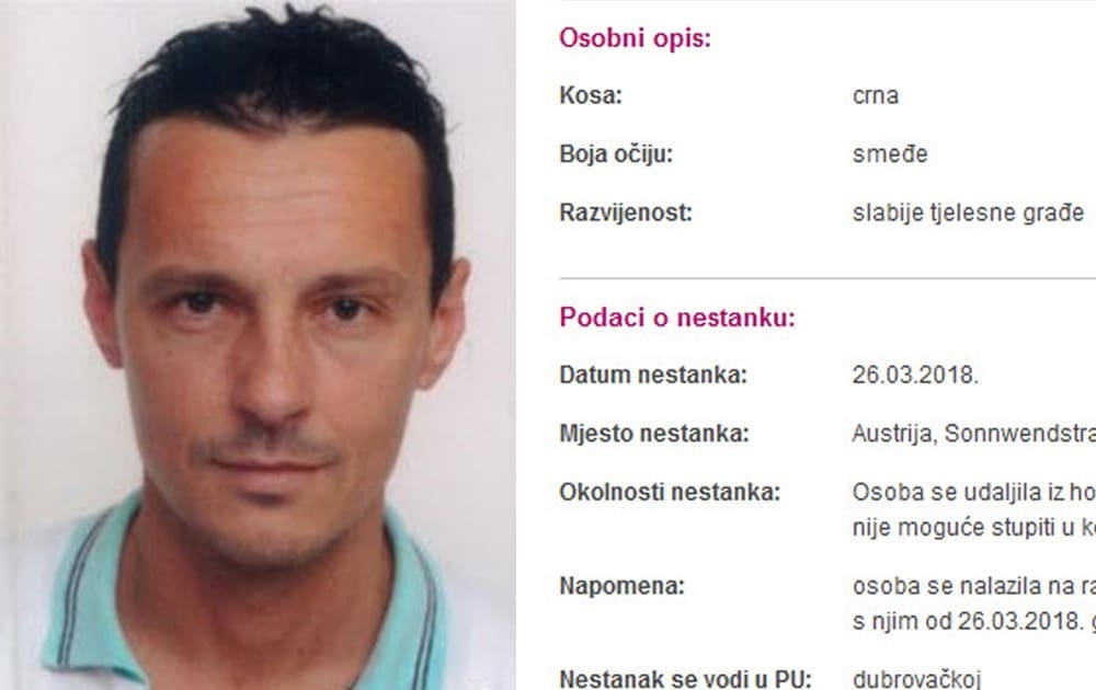 U ponedjeljak, 26. ožujka, u Austriji je nestao Marko Perkušić, rođen 1977. godine u Dubrovniku. On se nalazio na radu u Austriji u hotelu KU gdje je dobio otkaz, te se s njim od 26. ožujka ne može stupiti u kontakt, piše na stranici Nestali.hr.