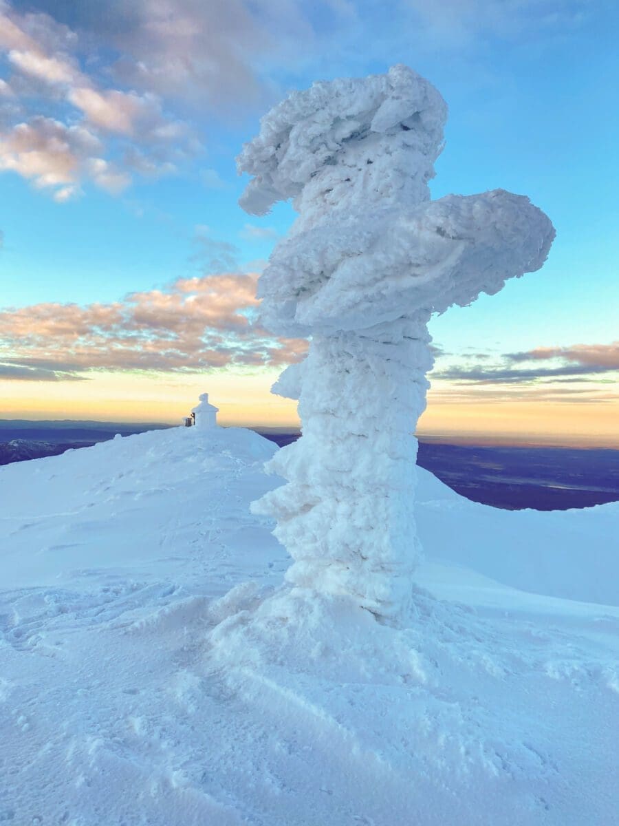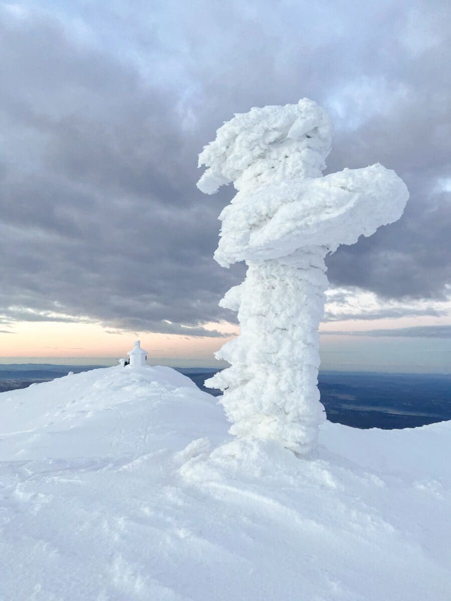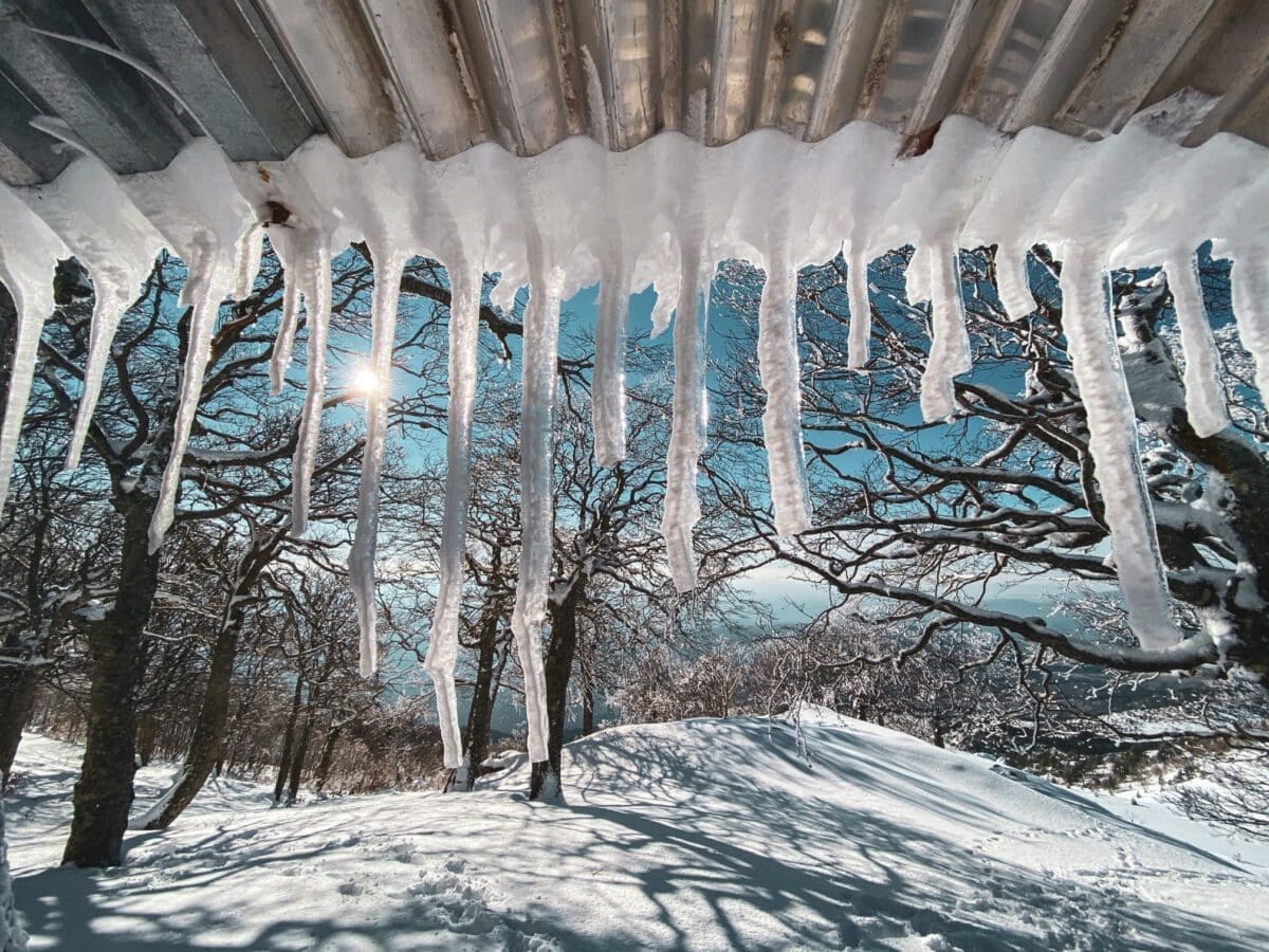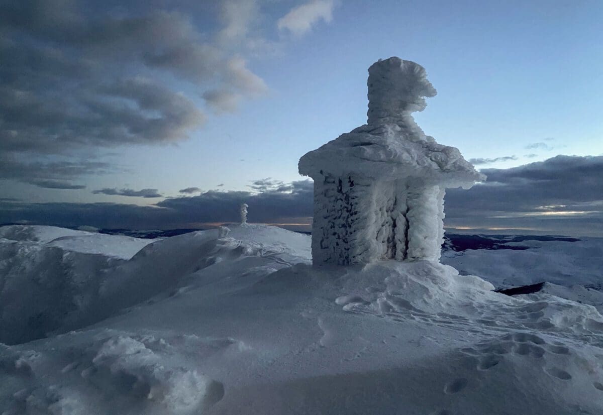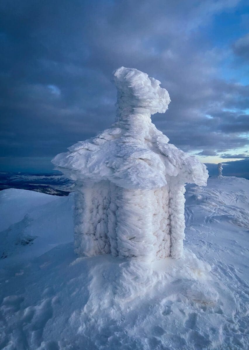 Na samom vrhu u postojeće sklonište nije moguće ući jer su ledene naslage potpuno "progutale" svaki predmet koji iti malo strši. Led je okovao i tamošnju automatsku meteorološku postaju koja upravo zbog toga ne šalje podatke online. Zanimljivo je da su naslage leda okrenute put sjeverozapada, što znači da su nastale za vrijeme puhanja orkanskog juga.