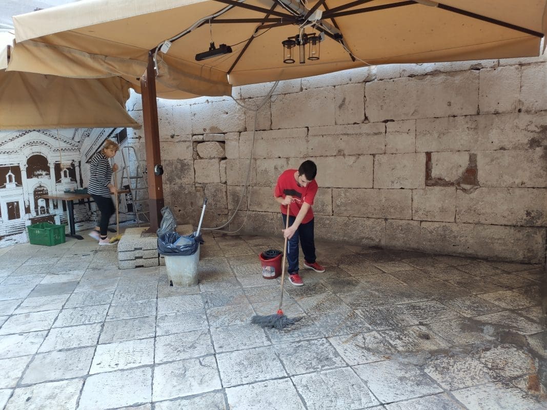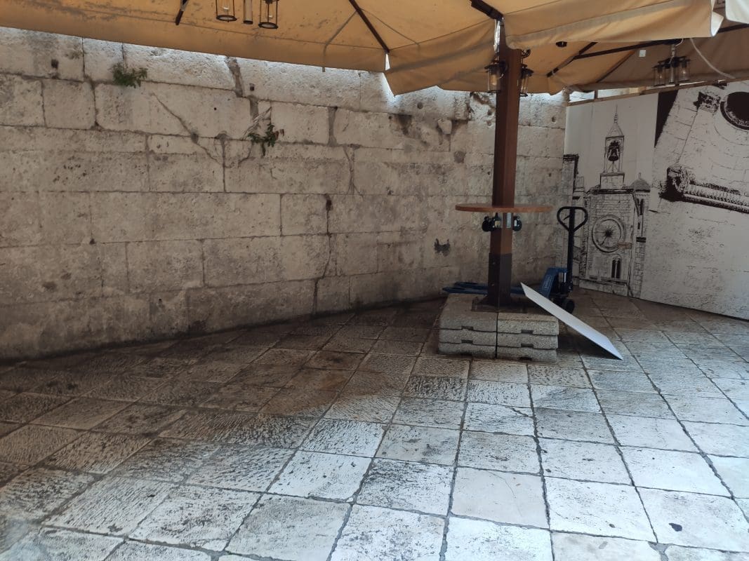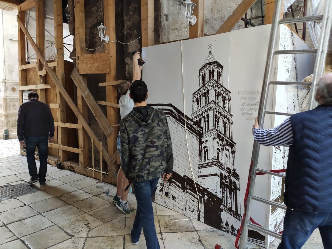 "Ispod Ure na Narodnom trgu radi se na sanaciji završavaju se radovi na sanaciji crkvice i pjeskarenju zidova. miču se panou i slike i stavit će ih na jedan drugi dio. Skela će se maknuti i nastavit će se radovi u samom centru Splita", kazao nam je Splićanin Joško Jaković.