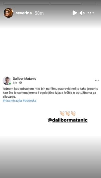 Nakon toga Severina je podijelila i objavu redatelja Dalibora Matanića o optužbama za silovanje na račun srpskog glumca Branislava Lečića.