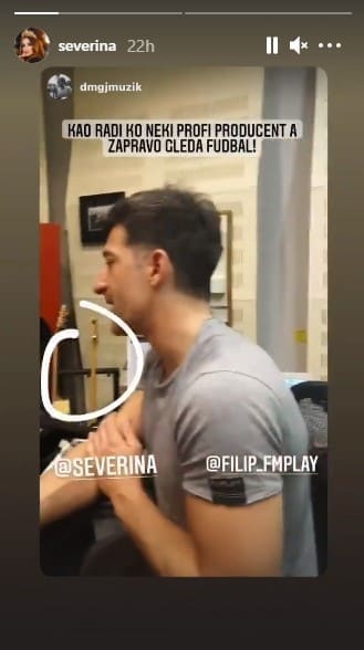 U objavi se vidi producent Filip Miletić, s kojim je Severina veoma bliska te mu je znala i čestitati rođendan preko svog profila. "Kao radi ko neki profi producent, a zapravo gleda nogomet", našalio se Severinin suradnik Domagoj Perišić, čiju je objavu pjevačica podijelila, piše Index.