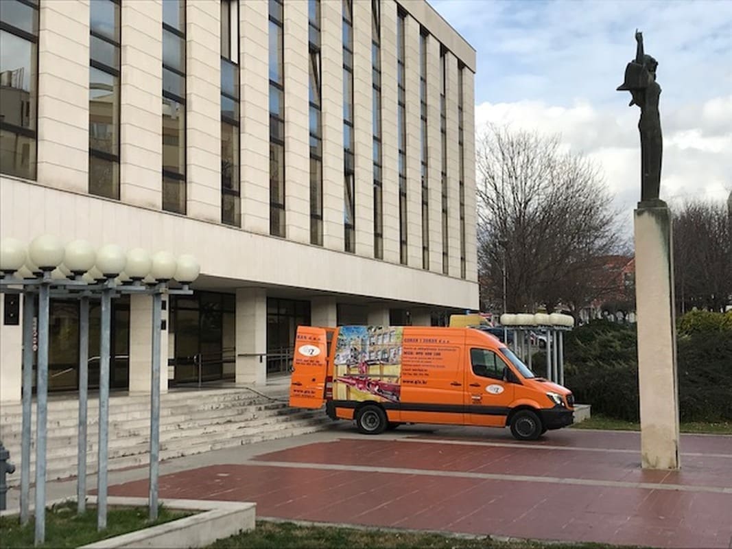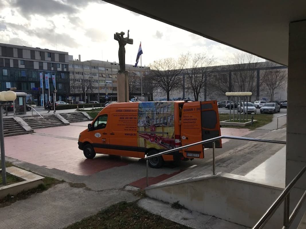 Uobičajena slika oko 15 sati pred “Palačom pravde” u Gundulićevoj ulici u Splitu, većina djelatnika pravosudnih institucija koje u zgradi imaju svoje sjedište odlaze kući nakon napornog radnog dana. Međutim, nešto ipak nije svakodnevno, dapače: narančasti kombi “Gorana i Zorana” dolazi na plato pored kipa “Božice pravde” Andrije Krstulovića, parkira stražnjim dijelom prema pomoćnim vratima te kreće sa svojim poslom...