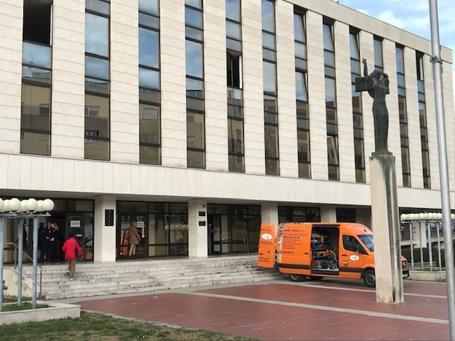 “U zgradi Županijskog suda u Splitu, Gundulićeva 29 A, a koju zgradu koriste i Županijsko državno odvjetništvo u Splitu, Općinsko državno odvjetništvo u Splitu, USKOK, Pravosudna akademija i zemljišnoknjižni odjel Općinskog suda u Splitu, povremeno dolazi do začepljenja temeljnih kanalizacijskih odvoda, te posljedičnog izlijevanja fekalija u prostorije zemljišnoknjižnog odjela Općinskog suda u Splitu.