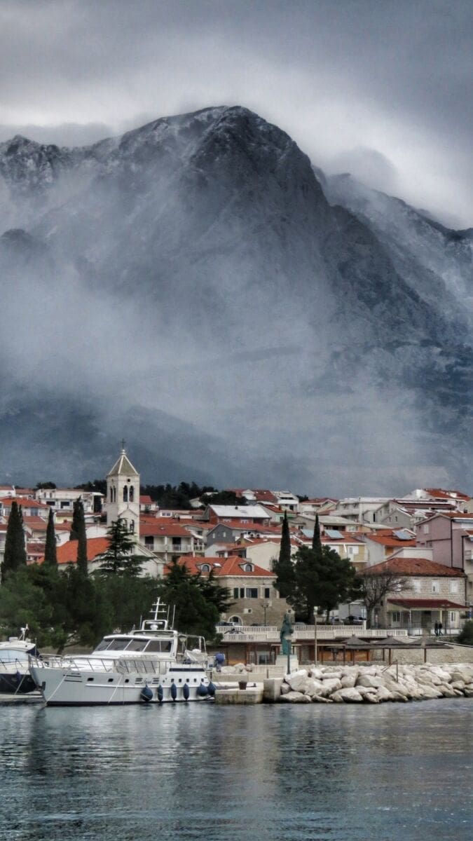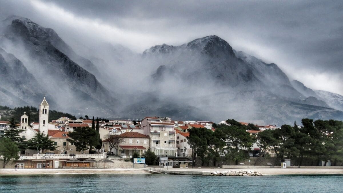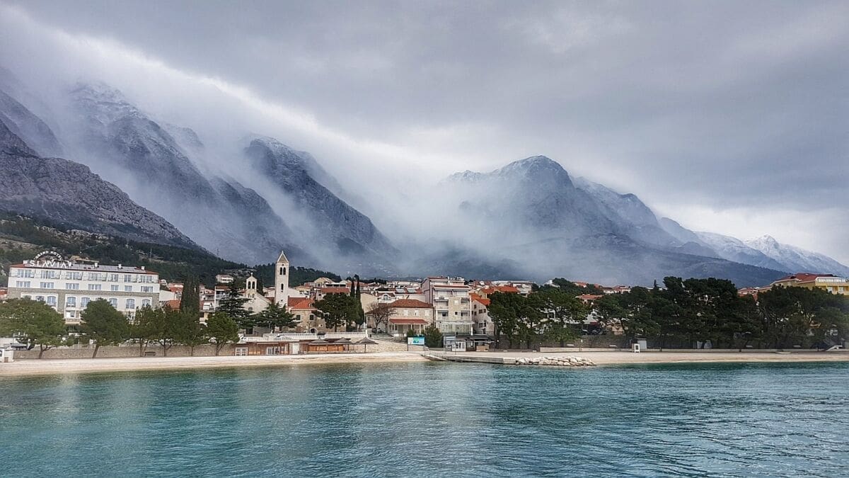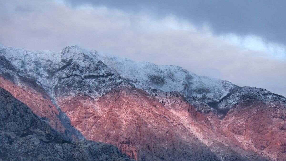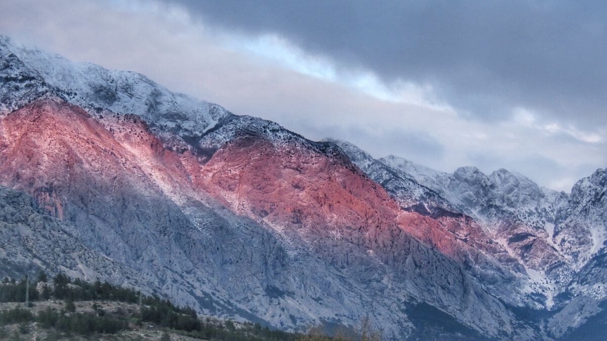 Koliko možda ne voljeli zimu, osobito ne krajem ožujka, toliko nas nekada zna oduševiti lijepim prizorima. Tako je danas bura u Baškoj Vodi nosila snježne zavjese s Biokova gotovo do morske razine. Kada se tome dodaju rumene zraka zalazećeg sunca, prizor je nezaboravan.