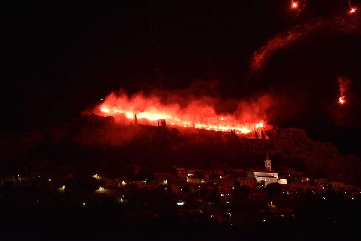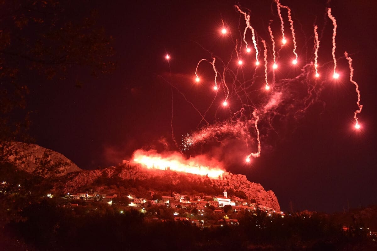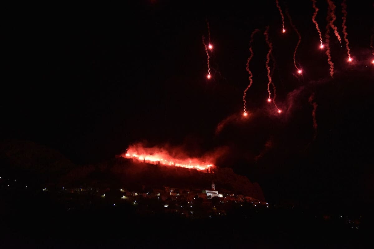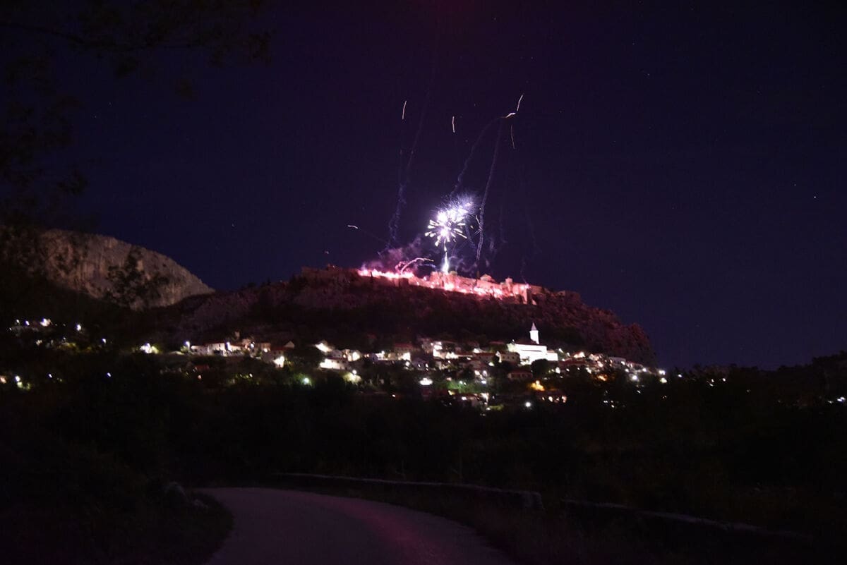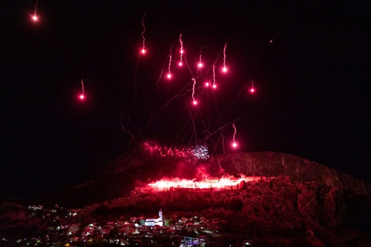 Više od 300-tinjak ljudi došlo je na simbol Klisa, klišku tvrđavu, koja je večeras specijalno za ovu prigodu bila u mraku kako bi signalne rakete i baklje koje su gorjele došle još više do izražaja.