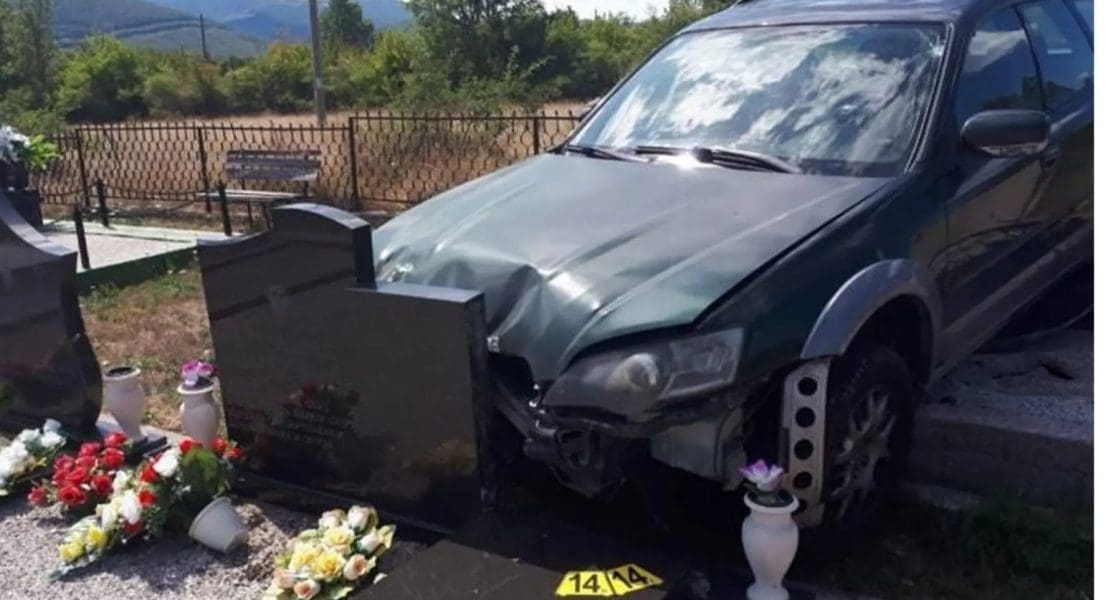 Prema fotografijama koje je poslala čitateljica, čini se da je vozač ('47. godište) automobilom srušio i nadgrobni spomenik.