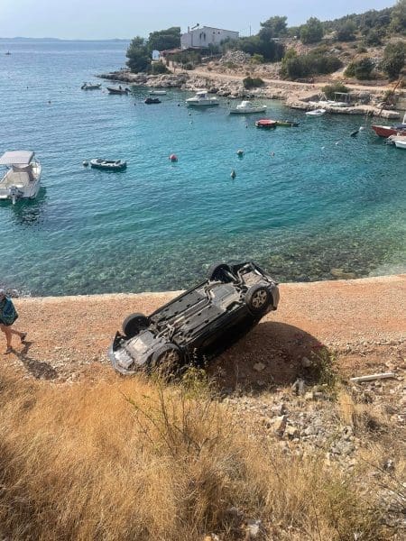 Čovjek je parkirao auto, nije poduzeo sve da ostane na mjestu i uslijed samopokretanja unatrag završilo je na krovu ispod razine ceste.
