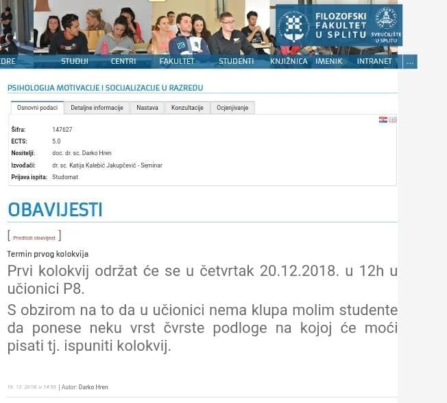 Jučer su nam studenti splitskog Filozofskog fakulteta ukazali na obavijest koja je osvanula na mrežnim stranicama ovog fakulteta, a koja je u najmanju ruku čudna.