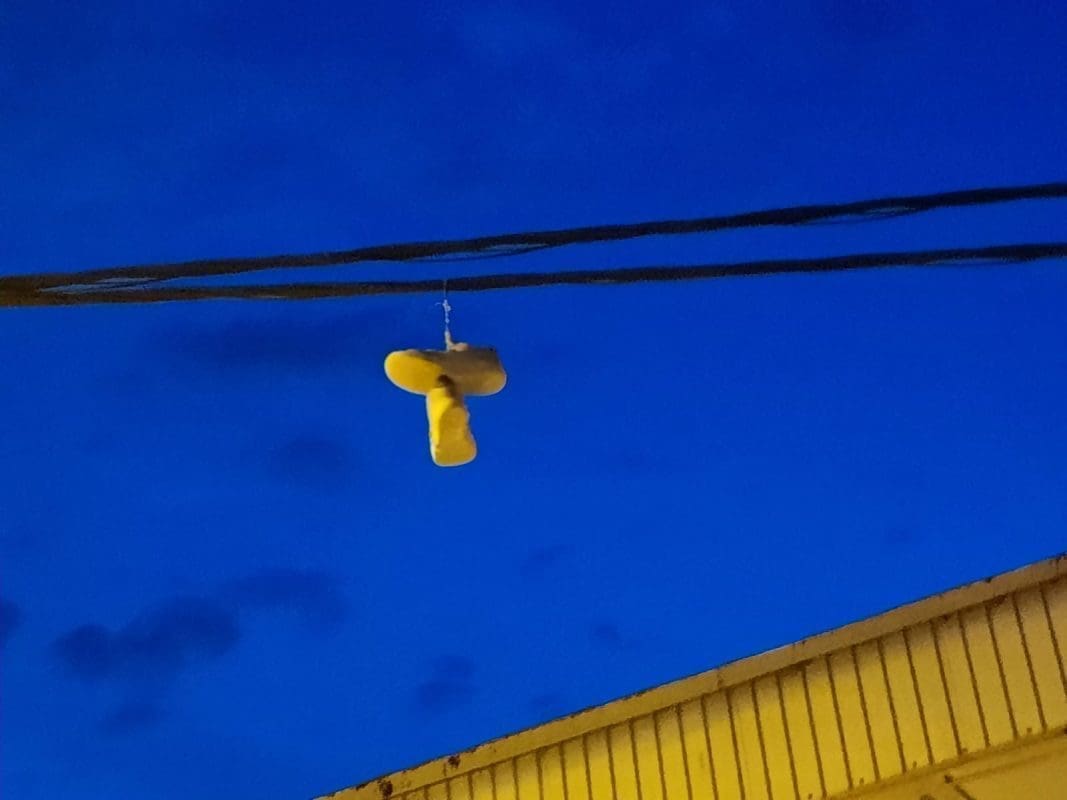 Nevjerojatan prizor iznenadio je mnoge građane na istoku Splita. Naime, u naselju Šine u neposrednoj blizini jednog dućana i osnovne škole nečije tenisice su završile na dalekovodu od struje.