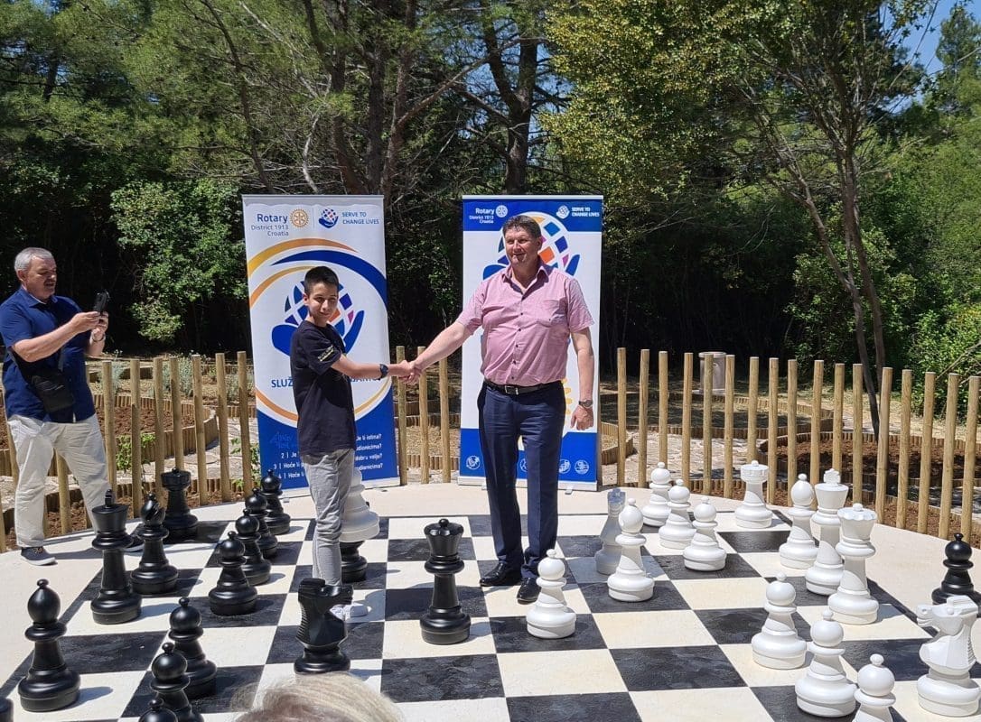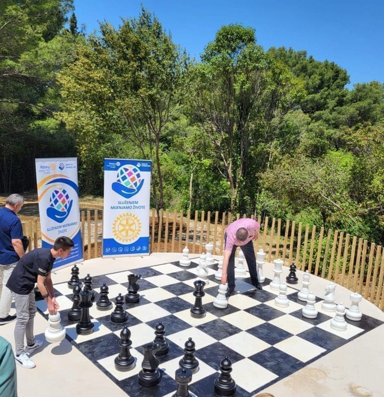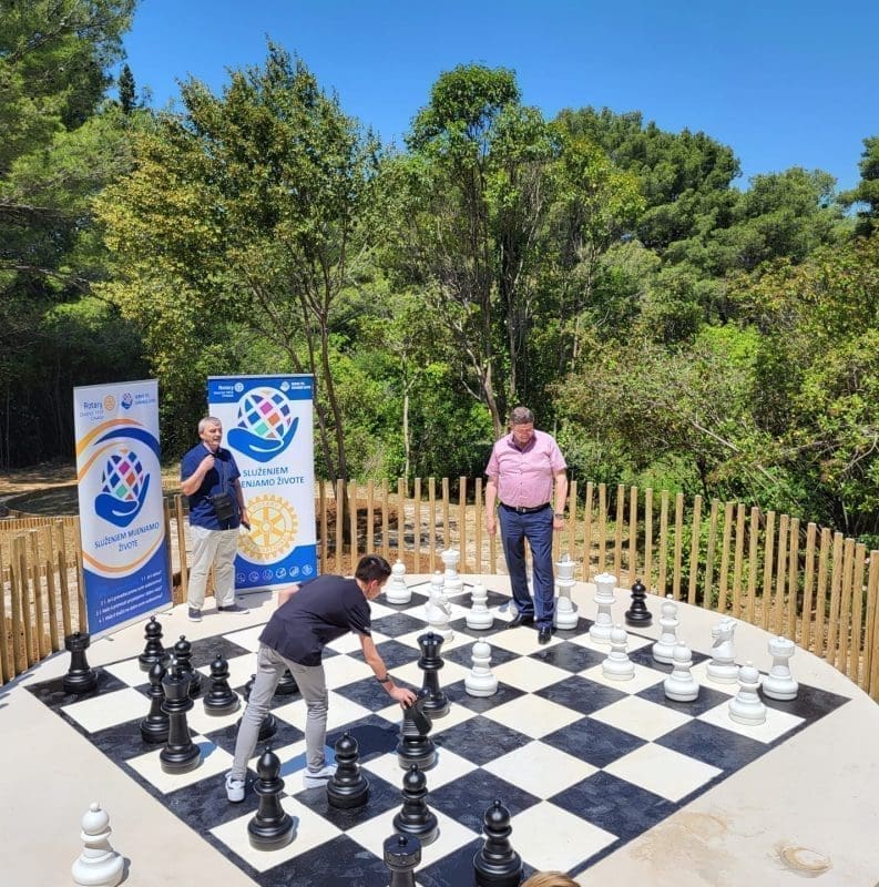 Uz humanitarni rad, hrvatski Rotarijanci podržavaju sve akcije koje doprinose dobrobiti lokalne zajednice, a i ovo je jedna od takvih. Ostat će zabilježeno da su prvu partiju vrtnog šaha na Marjanu odigrali predsjednik HŠS Ivica Brkić te petnaestogodišnji Marin Grgantov kadetski prvak Dalmacije, igrač s najvećim rejtingom u Hrvatskoj u kategoriji igrača do 15 godina. Meč je završen miroljubivim remijem.