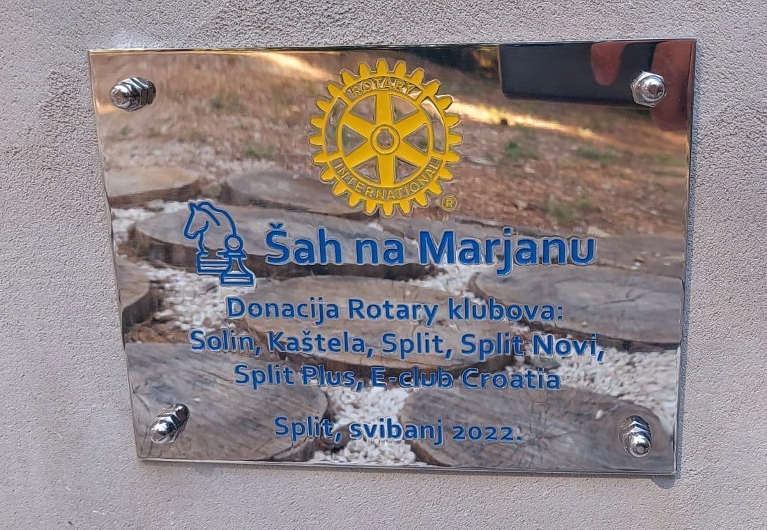 Vrtni šah je zajednička donacija Rotary klubova Solin, Kaštela, Split, Split Novi, Split Plus i E-club Croatia. Marjan je tako dobio još jednu sportsku aktivnost na otvorenom, a građani prigodu da pokažu svoje šahovsko znanje i u miru park šume razvijaju nove strategije.