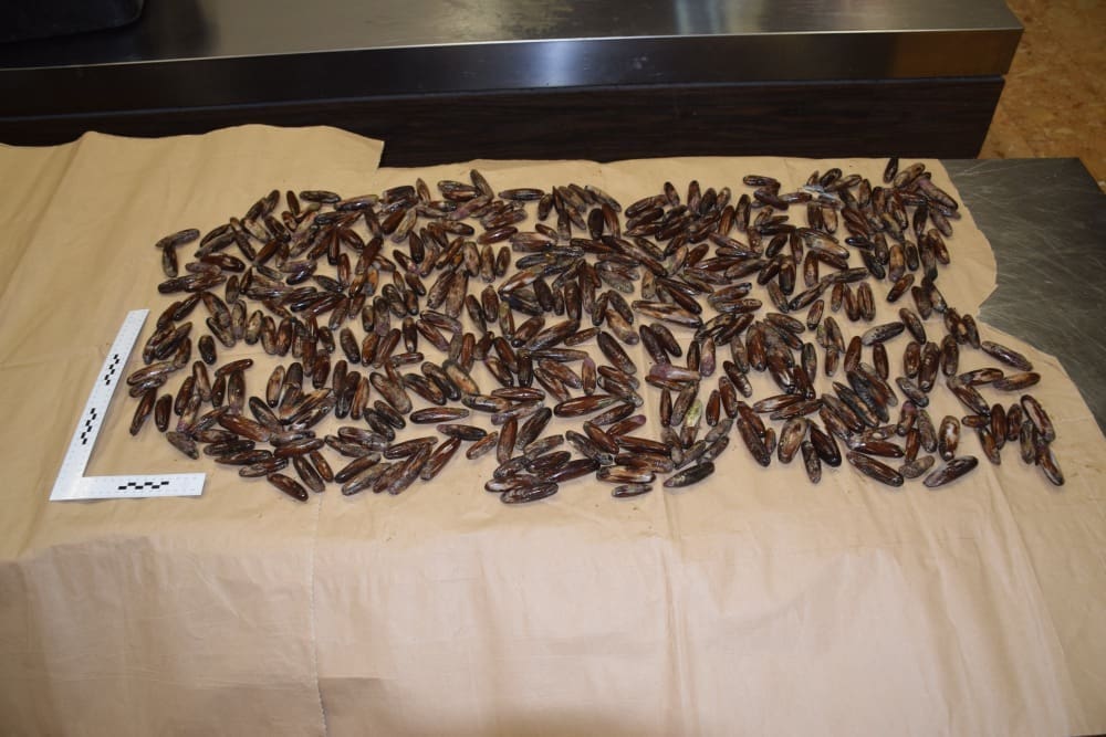 Kod njega je pronađeno i oduzeto 386 komada školjke prstac ukupne težine 6450 grama, te je u utvrđena je sumnja da je tog dana izlovljavao školjke uporabom boca za ronjenje, ronilačkog odijela, maske i priručnog alata (čekića i kliješta).