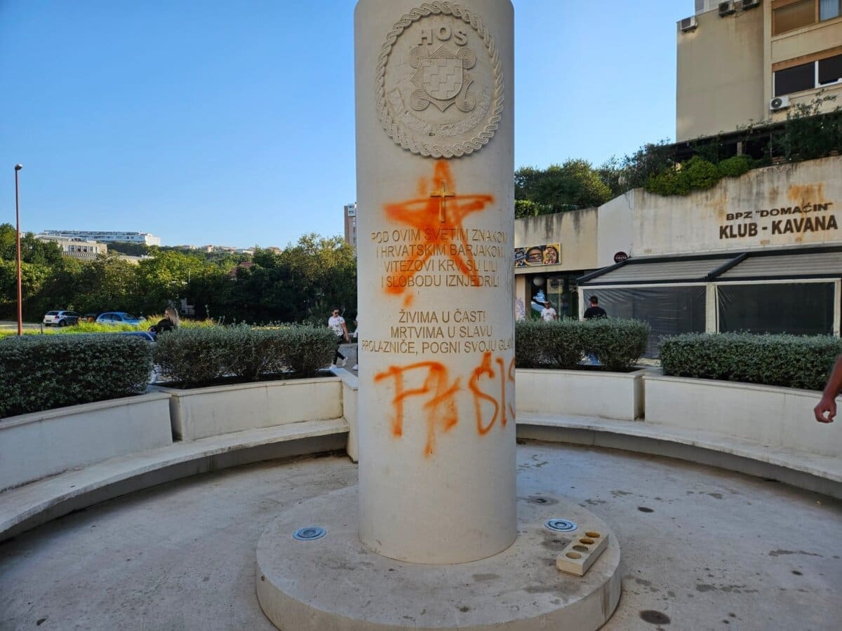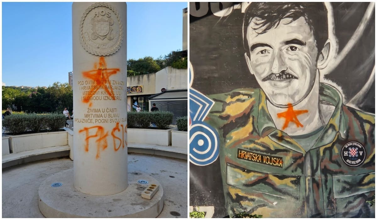 U splitskoj Ulici Ruđera Boškovića spomenik IX. bojne HOS-a osvanuo je išaran simbolom crvene zvijezde petokrake i natpisom „Fašisti“.