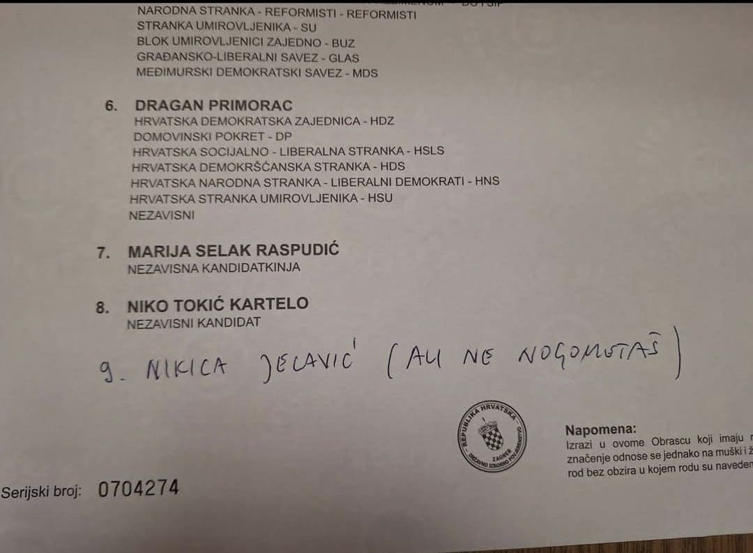 Fotografija listića kruži društvenim mrežama i izaziva smijeh diljem zemlje, a neki komentiraju kako ovaj humor pokazuje koliko se politika ponekad isprepliće s popularnom kulturom i svakodnevnim životom.