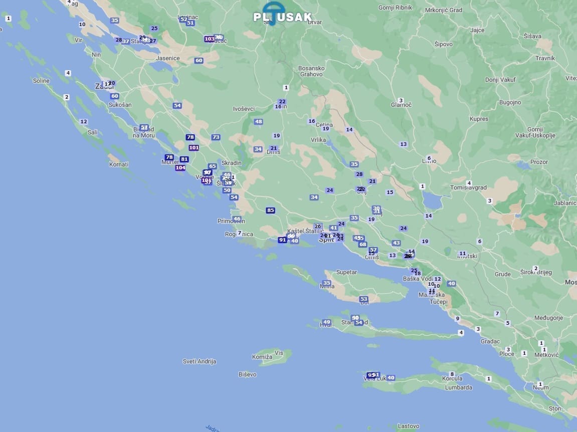 Prema podacima mreže Pljusak.com, do 19 sati u Murteru su pale čak 104 litre kiše po kvadratnom, metru, a preko 100 su još dobili Štikanda (103), te Prvić i Putičanje (101 mm).