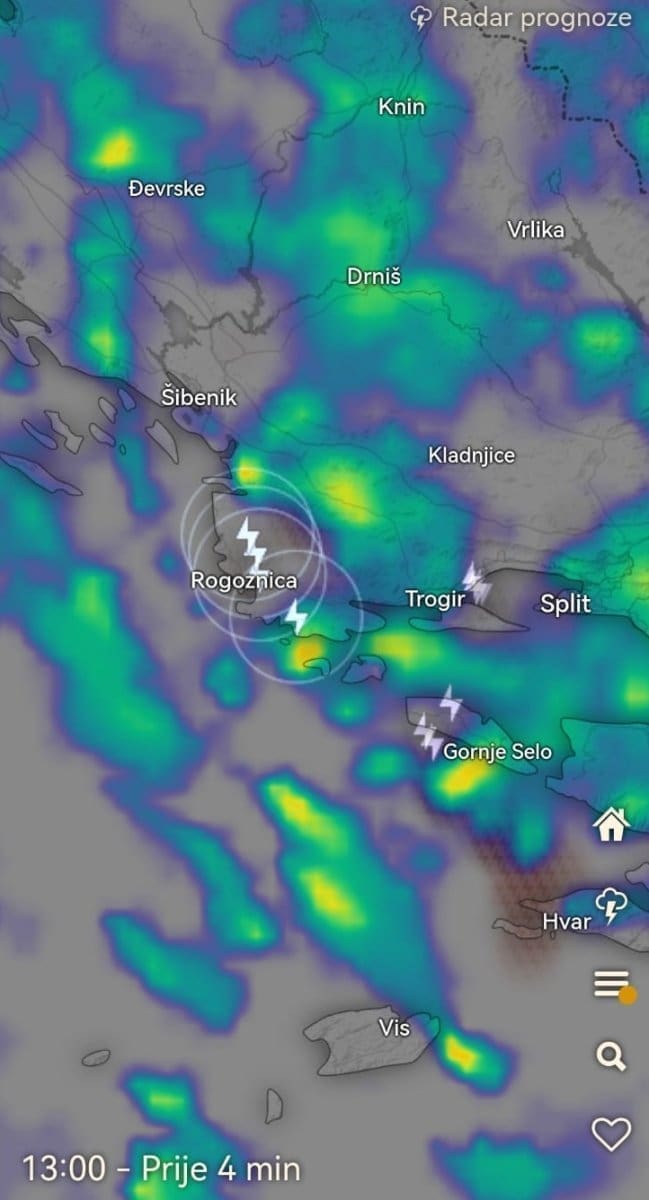 Tako su zadnja 24 sata u dijelovima Dalmacije pale količine kiše koje prosječno padne tijekom cijelog mjeseca (100 do 140 mm). Na širem splitskom području najviše su dobili Trogir (59) i Okrug Donji (86mm). Mjestimice je bilo i grmljavine.