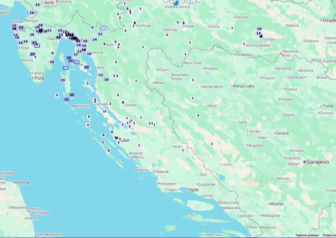 Prema podacima mreže postaja Pljusak.com, najviše oborina palo je na otoku Cresu, do 39 litara po kvadratnom metru, na Krku do 35 litara. Ranije jutros neverini su zahvatili jug istarskog poluotoka gdje je mjestimice bilo bujičnih poplava. U Dalmaciji je do 14 sati bilo kiše na širem zadarskom području, ali jake oborine počele su u šibenskom zaleđu.