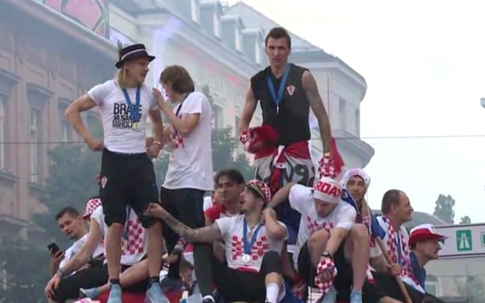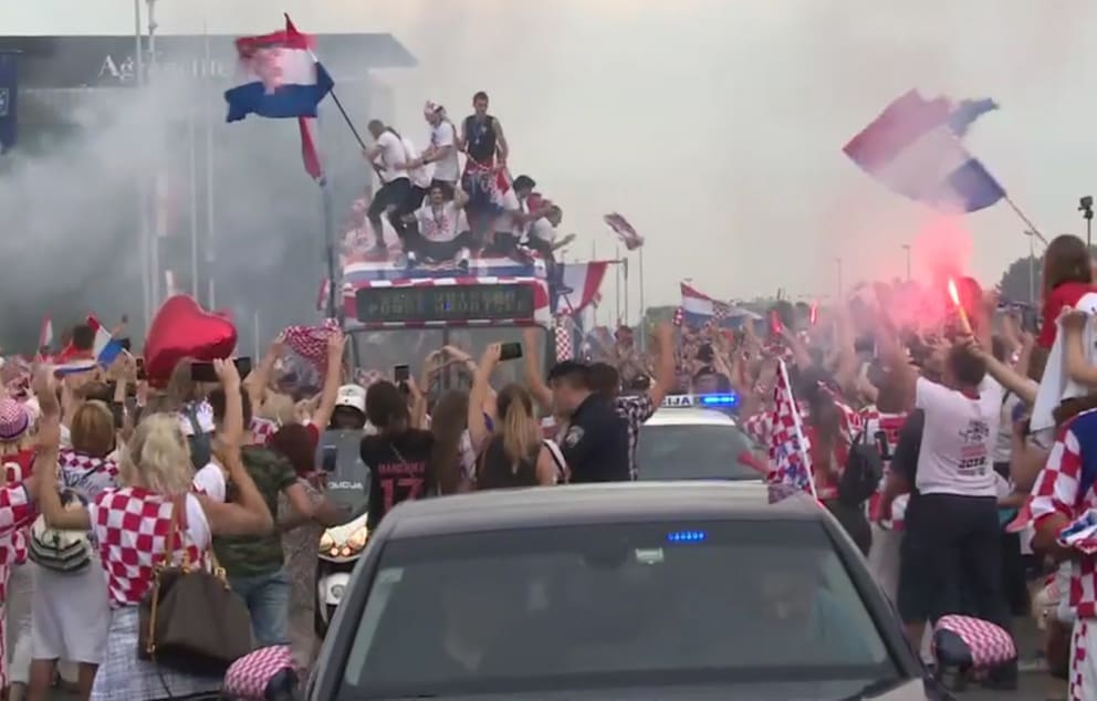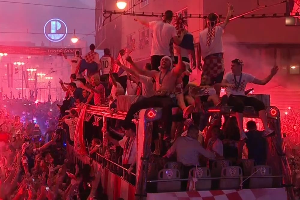 18:00 Čini se da je igrače ponijela euforična atmosfera koja vlada po cijelom Zagrebu. Modrić je u jednom trenutku na autobusu zapalio baklju. Pogledajte VIDEO.