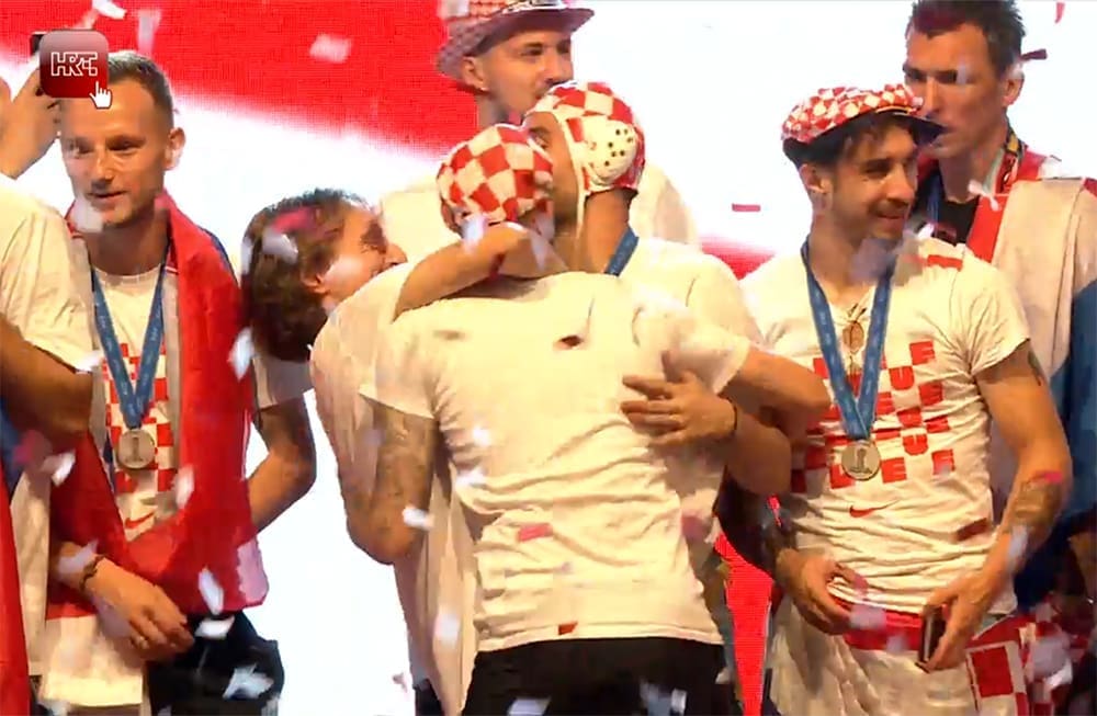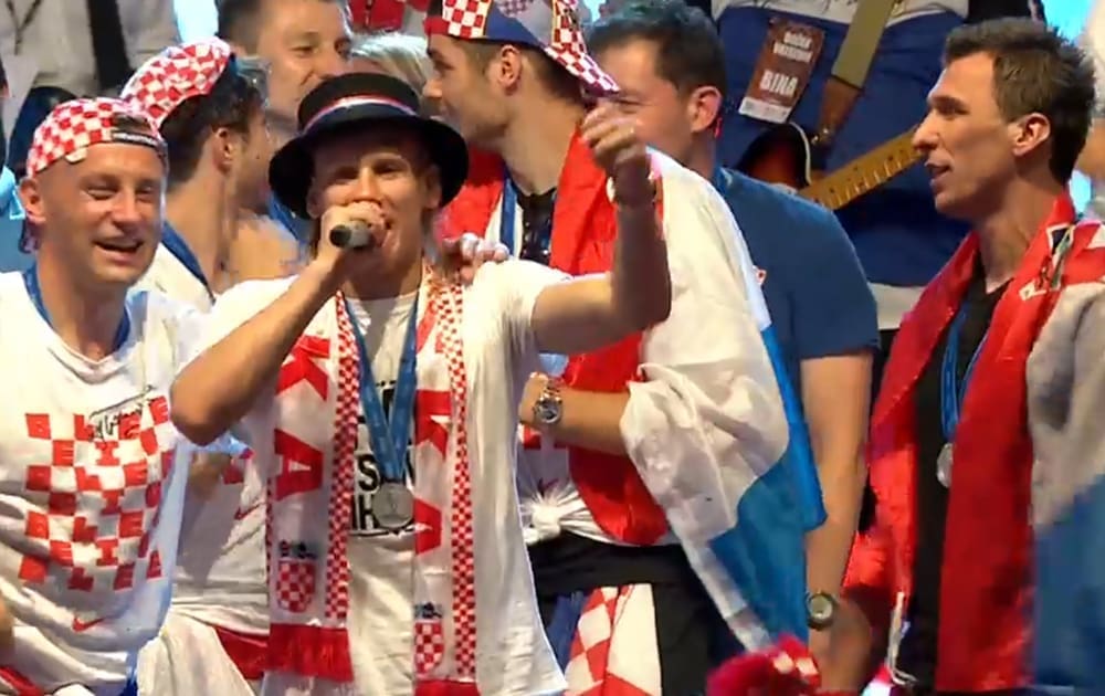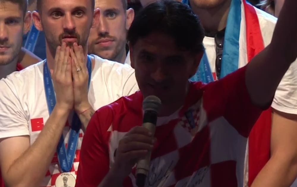 21:30 "U Rusiji nismo igrali za sebe, nego za naše obitelji, za vas, za sve Hrvate, i one u dijaspori, za naše branitelje, jer da nije njih ne bi bilo ni šahovnice. Nismo prvaci svijeta, ali smo viceprvaci, ali vi ste prepoznali da smo mi dali sve od sebe, baš kao što ste i vi dali sve od sebe. Iznad svega Hrvatska! - kazao je Dalić.