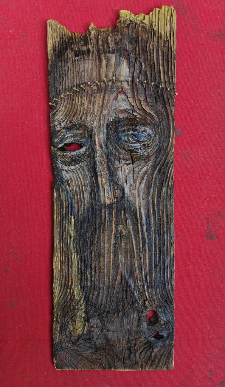 Muka je suvereno ušla u prostor, zaposjela ga i kulminira skulpturama autorice Grenc. Na (opet) običnom komadu drva s neskrivenim svim osobitostima njegovog biljnog života prikazani su sin i njegova majka. Sin u fazi života kad su mu u području čeonog režnja mozga same brokve. Bespomoćna majka s pripadajućom aureolom od godova spustila je blagi pogled na njegovu muku, pa su likovi postavljeni u izložbi scenografski. Sve je prirodno teško osim njihovih očiju koje su kristalno jasno obojane i kristalno jasno komuniciraju svoje unutrašnje svjetove.