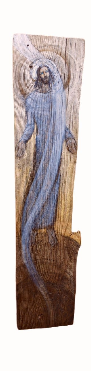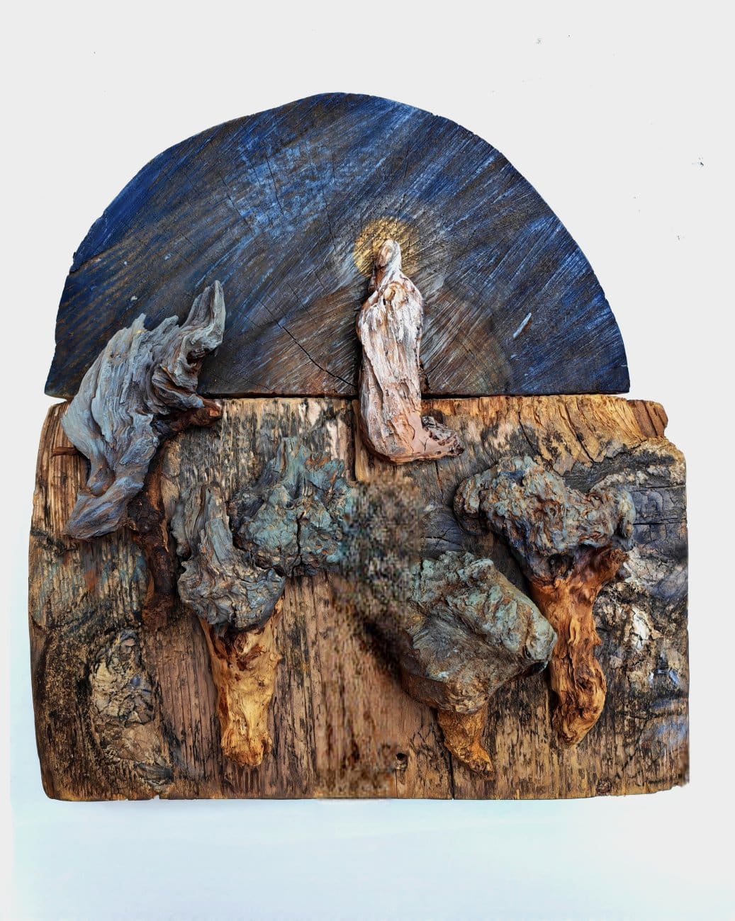 Kao i inače kod radova od Grenc, gledatelj se zapita kakva je to magična slučajnost idealno sretnog susreta komada drva i jedne umjetnice! Ili ipak nije slučajnost!? Od smrtnicima nedostižne percepcije, preko stvaralačke muke i umijeća prelaženja te muke konačni rezultat je da je drvo izraslo baš onako kako odgovara umjetnici, sa njenim znatnim ili neznatnim intervencijama, teško je prosuditi, i preraslo u portret Isusa i njegove majke Marije, u autentični odnos roditelja i odrasle osobe koja će tome roditelju uvijek biti dijete, bez obzira na dob osobe i njegovu ljudsku (ili božansku) misiju.