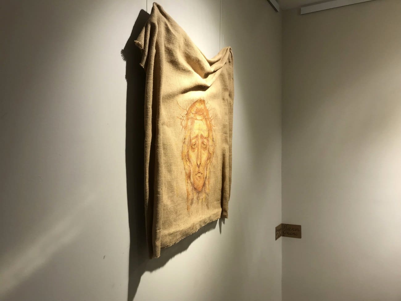 Na običnu jutenu „vriću za kumpire“ Botteri je naslikala portret Krista. Bodljave, neugodne niti vriće su poslužile kao idealna podloga za prikaz čovjeka u muci, a istodobno i za nevidljivo prisustvo žene koja mu je priskočila vratiti dostojanstvo s onim što je uza se imala – običan rubac ili, kako se to kod nas kaže, šudar da obriše čelo koje se opotilo i raskrvarilo. Baš kao i u životu, Veronikina gesta usamljena je na tome zidu – uz nju nema izloženih drugih umjetnina. Veronikin rubac definira pravac sjever – jug, svojevrsni cardo.
