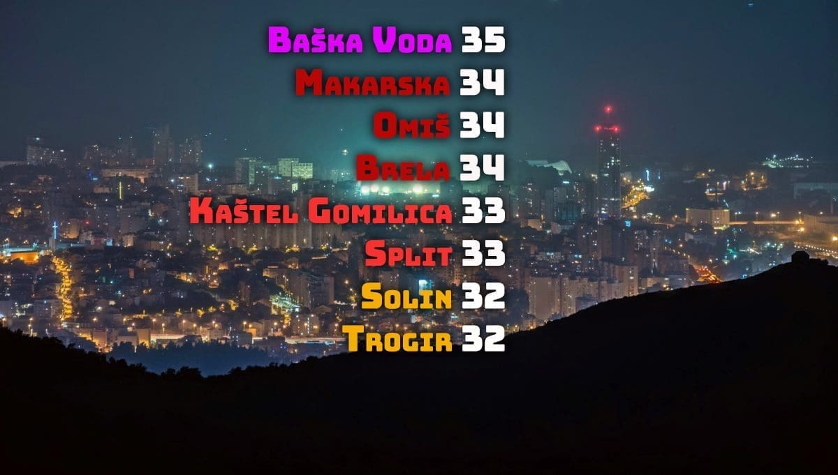 Nisko s 21 i Ljubitovica s 23 stupnja su najsvježiji sredinom noći u Dalmaciji jer su izbjegli buru i njen fenski učinak.