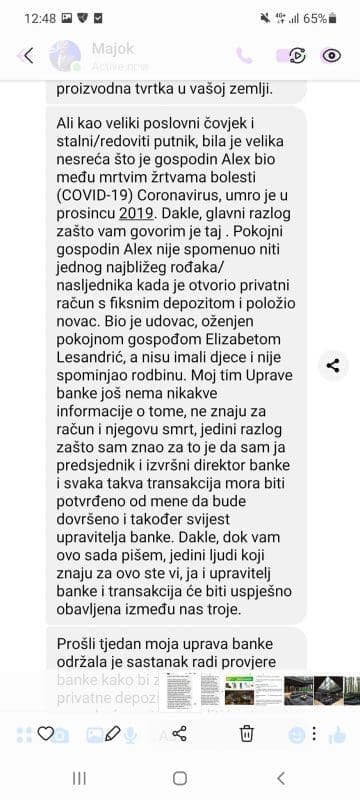Kako je vidljivo, riječ je klasičnoj Internet prijevari na koju su već mnogi naviknuli. Često su ovakve poruke predmet šale na društvenim mrežama, no za neke koji nisu upoznati s ovakvim opasnim ponudama poruka može biti kobna po njihov bankovni račun.