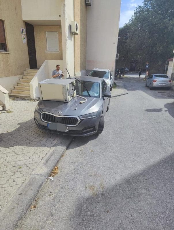 "Tko je izgubio perilicu? Mjesto radnje Split parkiralište uz zgradu prometne policije.