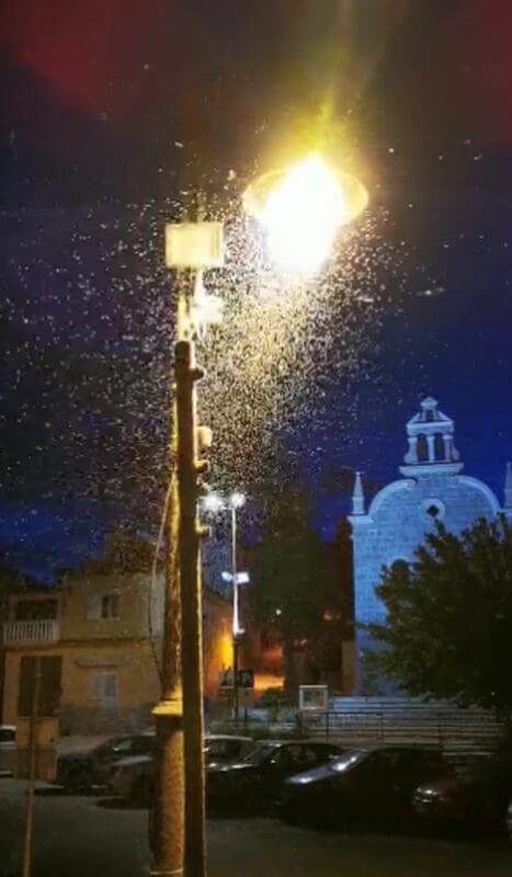 Naš čitatelj Ivan Ivičin na jednom rasvjetnom stupu u Tribunju snimio je najezdu kukaca. Nevjerojatna snimka je i njega zaprepastila te nam je poslao.
