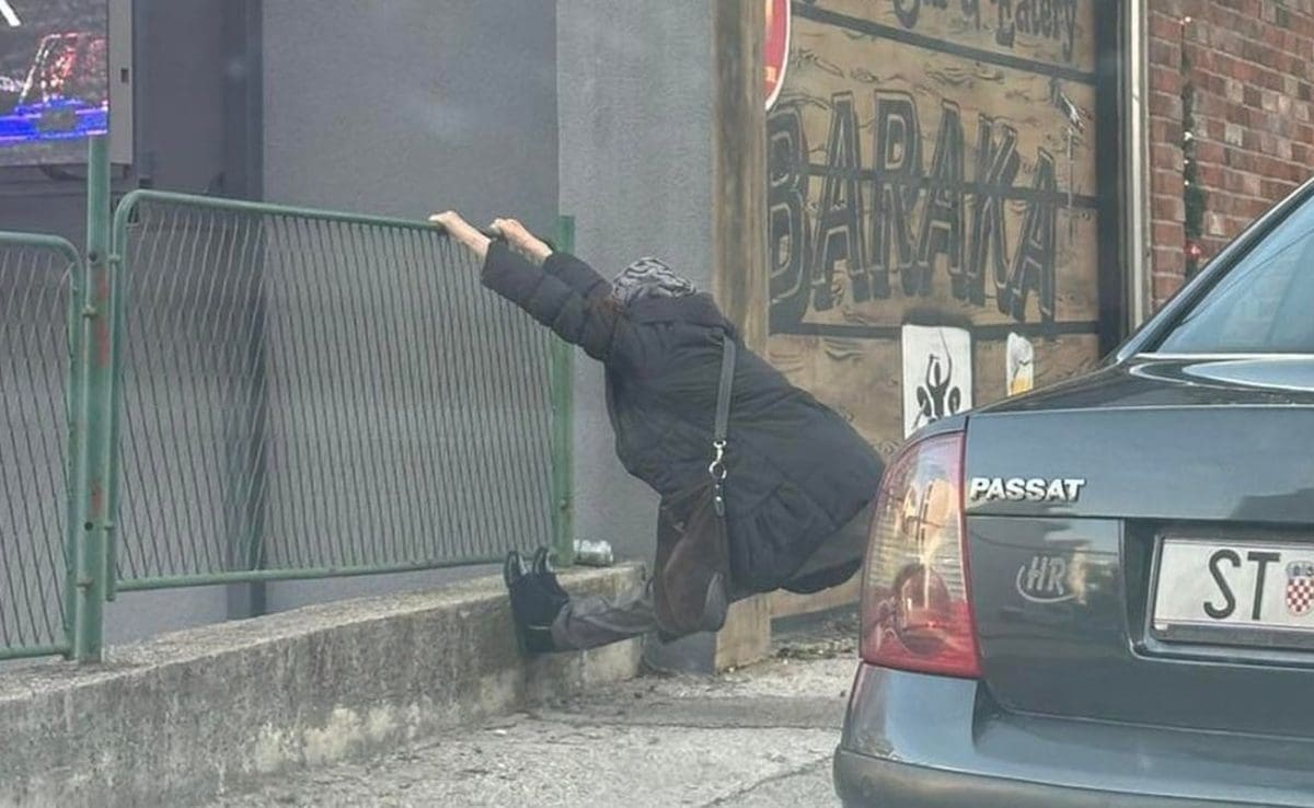 Naime, Dnevna doza prosječnog Dalmatinca objavila je na svojoj Facebook stranici urnebesnu fotografiju gospođe kako se isteže koristeći ogradu kao oslonac.