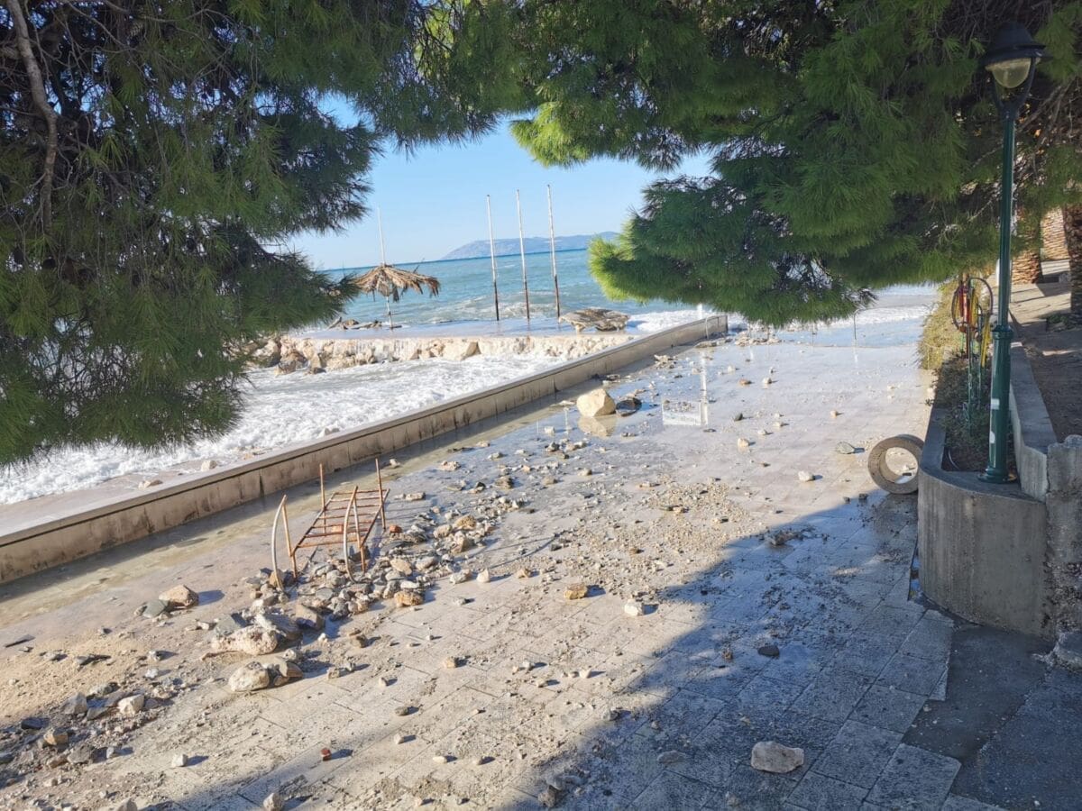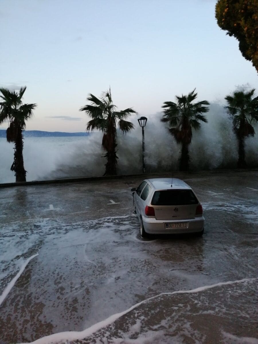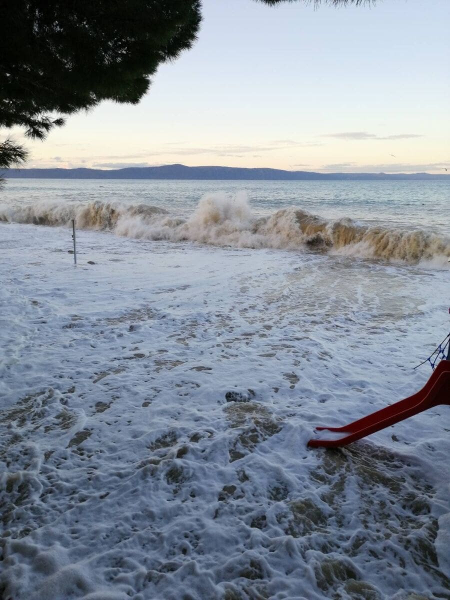 Osim valova i plime, plavljenju su pomogle i obilne oborine. Primjerice u Makarskoj je palo 78 litara kiše. Nevjerojatne snimke stižu nam iz Podgore gdje je nevrijeme u potpunosti razorilo sve u blizini obale. Plaže su uništene, a šljunak razbacan daleko od obale. More je poplavilo ulice, dok su valovi čupali pločice i povlačili manje objekte u dubinu.