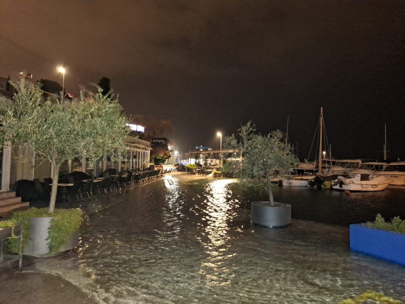Za aktualnu noć postoji dobra i loša vijest. Dobra je svakako da će vjetar značajno oslabiti, a time će se smanjiti valovi. Međutim, kako se očekuje vrhunac lunarne plime oko zore, more će i dalje biti značajno iznad uobičajene razine.