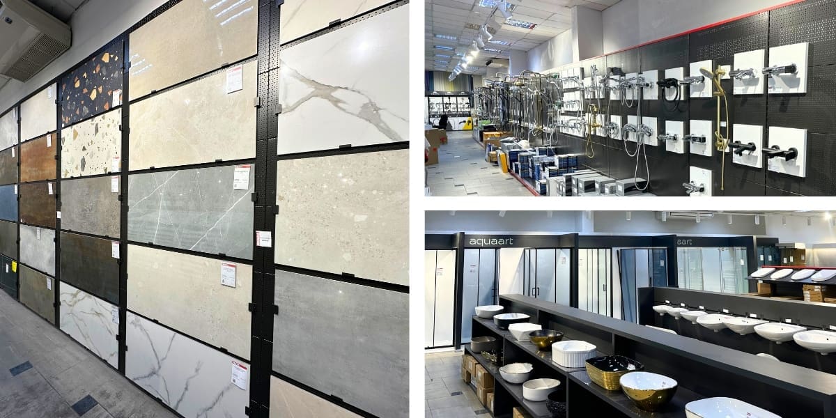 - Asortiman uključuje keramičke pločice za podove i zidove različitih dimenzija i završnih obrada, kao i sve što je potrebno za ugradnju: ljepila, fuge, lajsne, profile i silikone.