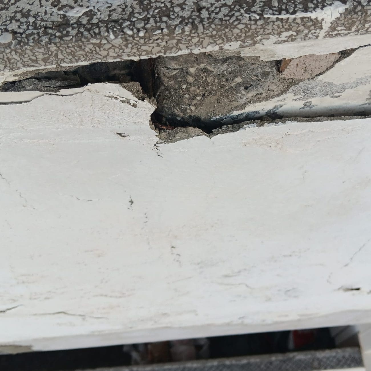 Pisma i fotografije s mjesta događaja pokazuju napuknute betonske ploče, odlomljene komade žbuke i hrđave željezne šipke koje vire iz betona. Opasnost je tim veća što se ispod terasa nalazi javna površina kojom svakodnevno prolaze stanari, djeca i slučajni prolaznici.