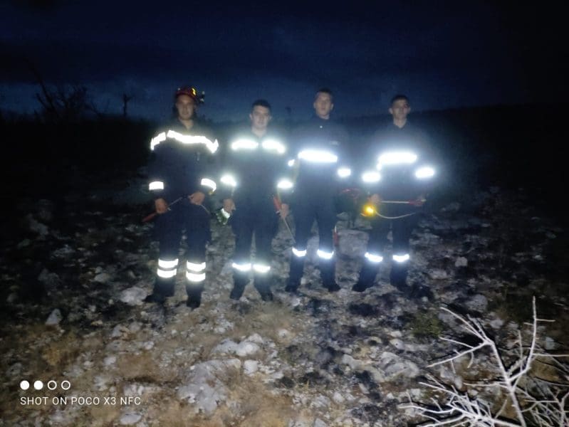 Na intervenciju je 8 vatrogasaca s dva vozila. Vatrogasci su s naprtnjačama, radi se o teško pristupačnom terenu. Spuštamo se prema požaru, imamo oko kilometar do vatre.