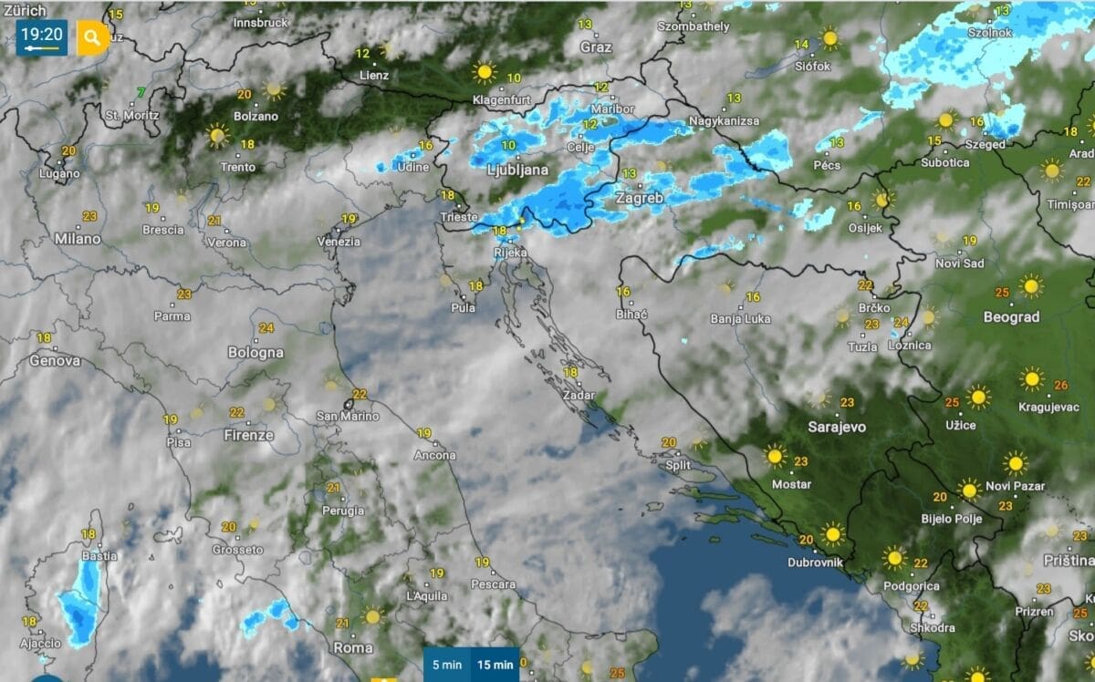 U sjeverozapadnom dijelu zemlje najviše kiše je palo u Zagorju, od 10 do 20 litara po kvadratnom metru. Ova promjena vremena prolazne oborine i osvježenje će donijeti i sjevernom Jadranu, no u većem dijelu Dalmacije zadržat će se suho. Tek vrlo malo kiše može pasti u sjevernoj Dalmaciji tijekom ponedjeljka, no na sjevernom Jadranu su moguće i veće količine oborina. Sutra će nam ponovno pojačati jugo.
