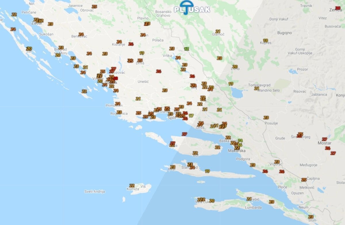 Kako je i bilo najavljeno, nedjelja je u cijeloj Dalmaciji protekla u znaku suhog, toplog do vrlo toplog vremena. Najviše dnevne temperature zraka bile su većinom od 22 do 27°C. Danju je bilo dosta sunca, a krajem dana sa zapada se jače naoblačilo.
